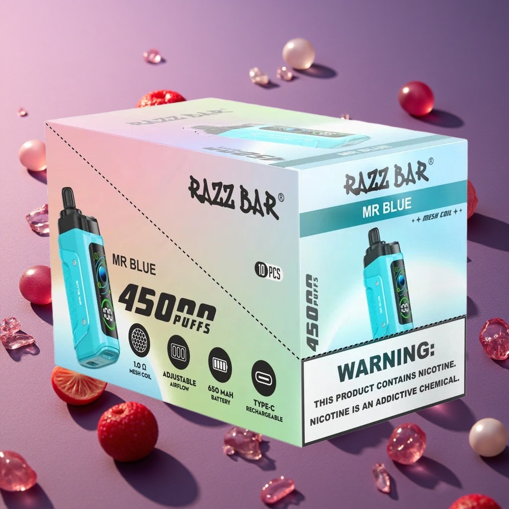 Razz Bar 45000 Puffs Elszívható E-cigaretta Állítható Légáramlással és Kék Íz