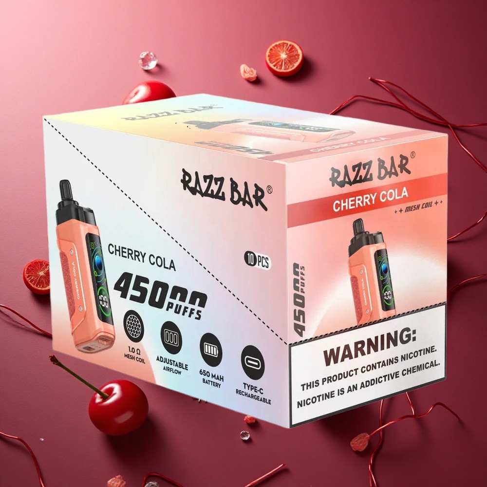 A Razz Bar 45000 Puffs Disposable Vape a hosszú élettartamú és kiváló teljesítményű eldobható e-cigaretta, amely tökéletes megoldást kínál a magyar vásárlóknak és nagykereskedőknek.